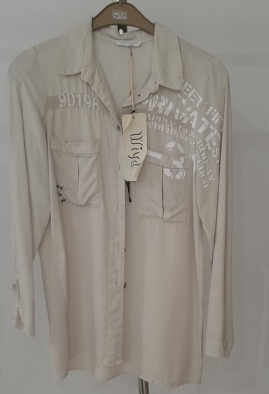 Сорочка пісочного кольору в стилі мілітарі Wiya, Італія Склад: 95% бавовна, 5% еластан Оne Size: ПОГ 45 см, плечі 34 см, рукав 60 см, довжина по спинці 74 см Виробник: Wiya, Італія
