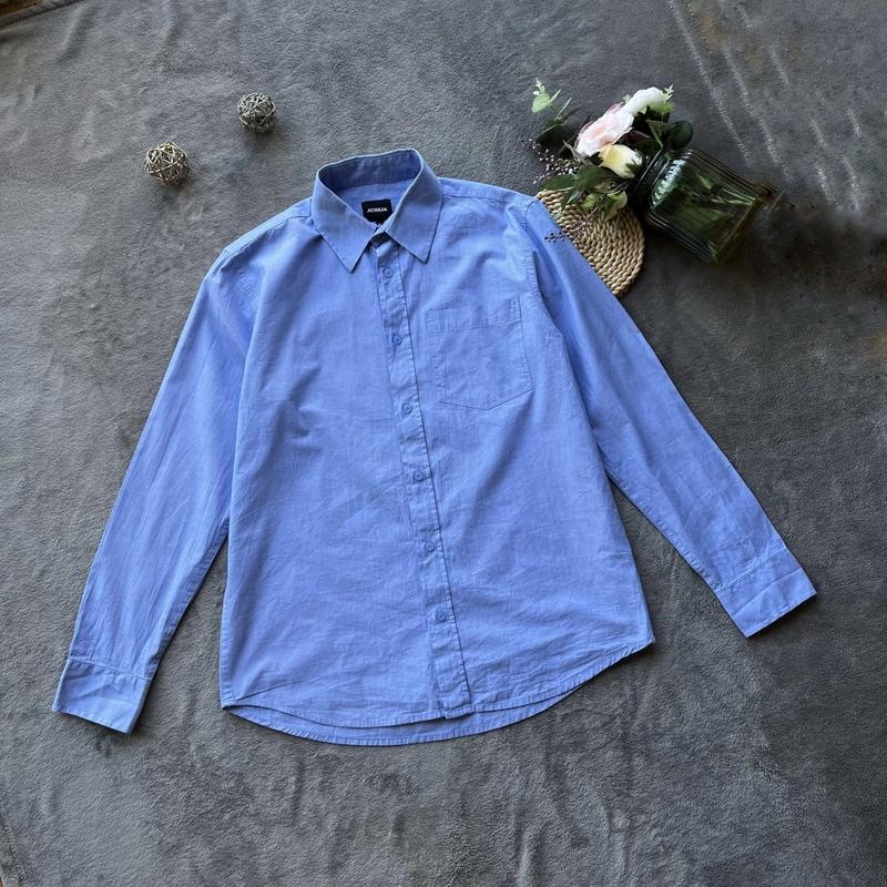 Сорочка р. М Темно блакитна сорочка з чоловічого плеча, бавовна, на одному рукаві є кілька жовтих плям, не дуже помітні, вільного крою Довжина 70 см Пог 50 см Довжина рукава 62 см (2904)