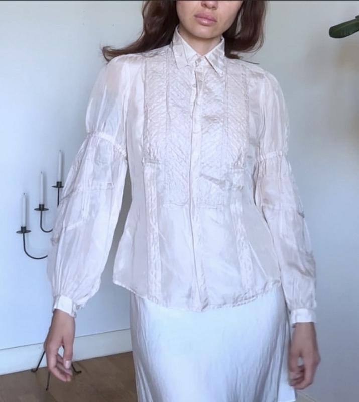 Жемчужного кольору блуза з обьємними рукавами. 100% шовк. Стан ідеальний. Розмір вказано М