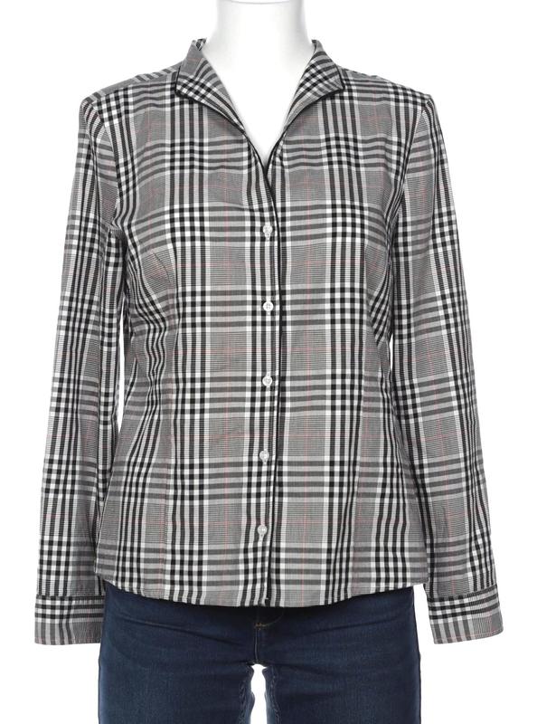 состояние новой, элегантная рубашка-блузка в клетку - вне времени и моды, хлопок-ткань, приталена сзади и спереди вертикальными вытачками, застёжка на брендированные пуговки, оригинальный воротничок, длина от плеча 67см плечи 43см рукав 62см ПОГ 55см ПОТ ок.50см ширина внизу 57см