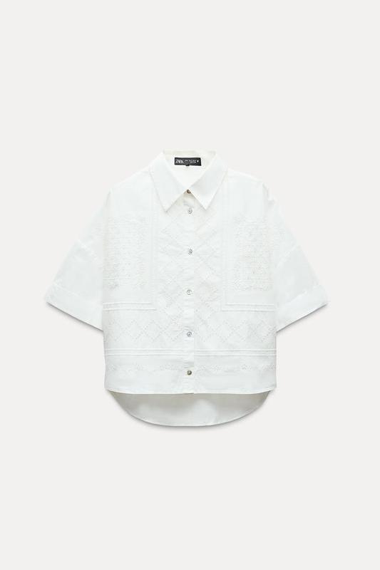 0881/069 Описание: Рубашка с воротником и короткими рукавами. Спущенные плечевые швы, манжеты с отворотами. Вышивка тон, асимметричный низ. Застегивается на пуговицы. Состав: 100% хлопок В наличии размеры: XS: общая длина от плеча - 49/54см, ширина по спинке - 58см, дл. рукава от воротника - 39см, S: общая длина от плеча - 49/54см, ширина по спинке - 60см, дл. рукава от воротника - 40см, M: общая длина от плеча - 59/64см, ширина по спинке - 62см, дл. рукава от воротника - 41см,