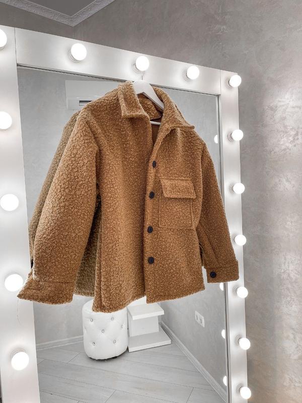 Сорочка Модель 30216 Тканина Тедді хутро Колір беж Розмір 42-46 Довжина рукава від горловини 77 Довжина виробу 70 ОГ 120