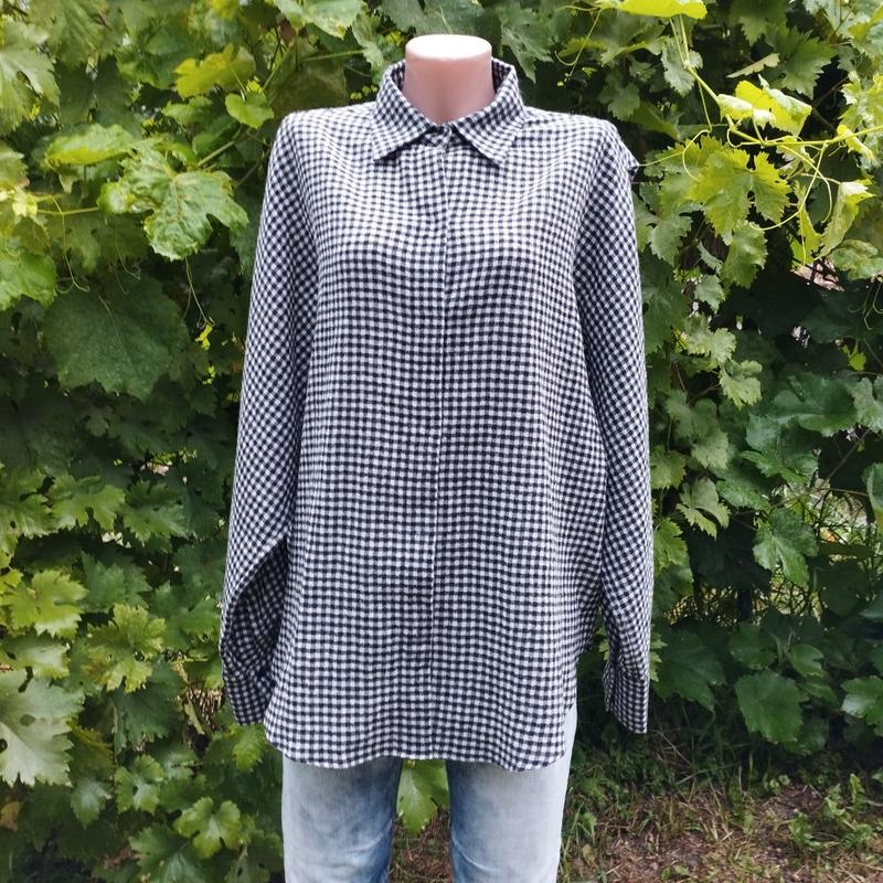 Сорочка овер від Massimo Dutti. Тонка м'яка тканина, приємна до тіла. Бірка з составом тканини зарізана, але впевнена, що 100%- вовна. Класичний принт в чорно-білу клітинку. Схована застібка на гудзики. Ідеальний стан б/в, без нюансів. Розмір вказано М. Підходить також на L. Заміри: ШП-50 НОГ-70 НОН-64 Довжина рукава від горловини-78 по нижньому шву-41 Ширина рукава зверху -32 знизу -11 Довжина по спинці -74 см.