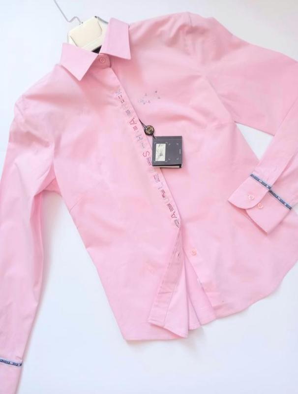 Женская нежная рубашка Paul Shark , розового цвета, приталена , со стретчем, украшена стразами и тесьмой. Состав : 95% хлопок, 5% эластан. Размер L . Замеры на Л , плечи 39 , грудь 48 , длина рукава от плеча 63 , длина 62.
