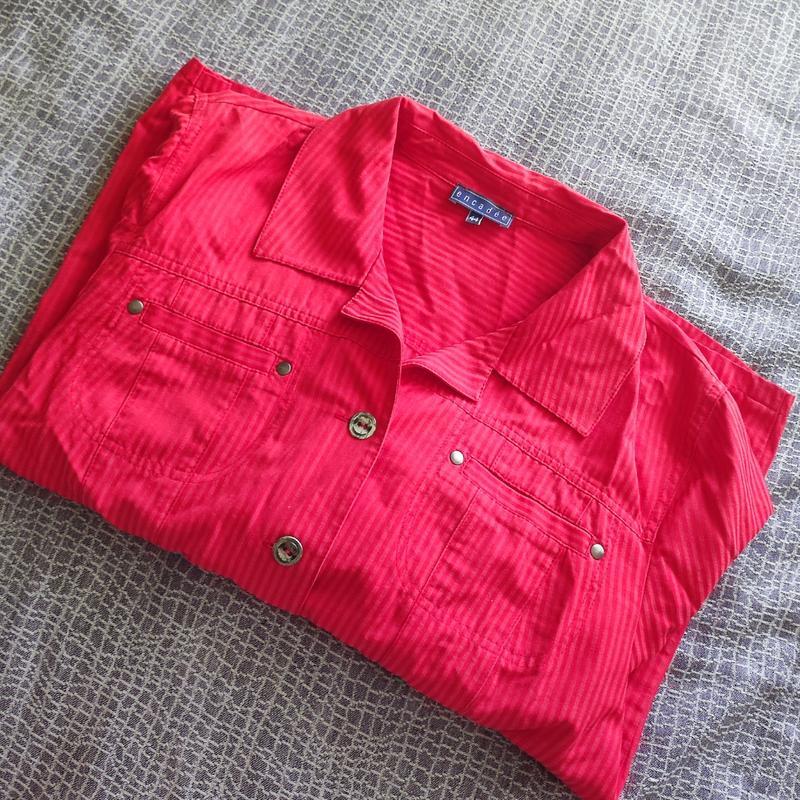 Коралова рубашка з карманами в полоску розмір М