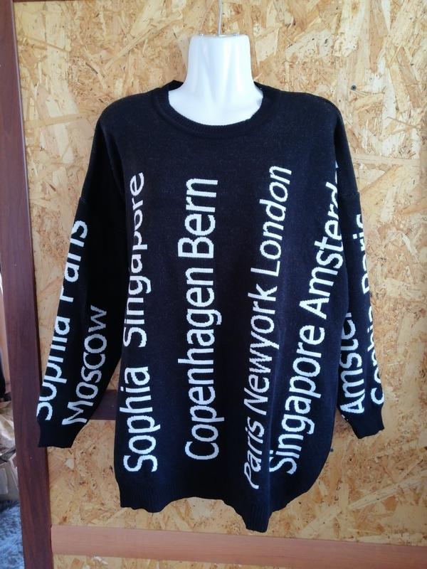 в'язаний светр із назвами різних міст Але є одне місто назва якого дуже багатьох бентежить