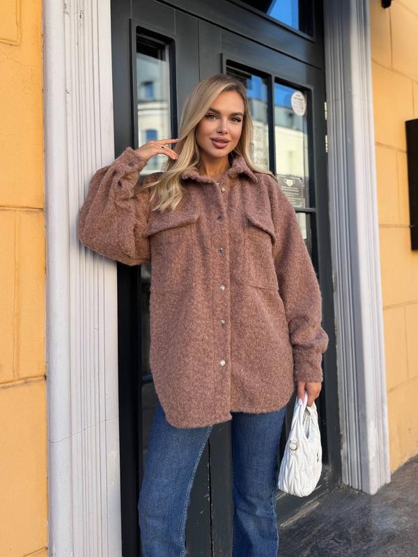 Фото реал 🙂 Сорочка мод.202 ☑Цена:879 грн ☑Размер:42-48 oversize ☑Цвета:шоколад,молочный,черный,беж ☑Тканина: альпака барашек Невероятные теплые рубашки в трендовых цветах 😍😍😍это просто вау