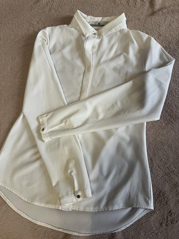 Сорочка біла, без дефектів , підійде на розмір S-M, ззаді подовжена Заміри: ПОГ - 40см Щирина плечей - 38см Довжина - 59см Довжина рукава - 58 см