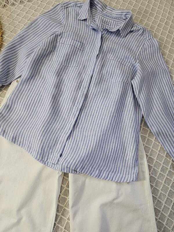 Стильна, 100% льон! Блакитна в білу смужку. Стан Новий! Р. 14-16 Сорочка Довжина 72 см Груди 57 см Талія 58 По низу 61 см Плечі 43 см