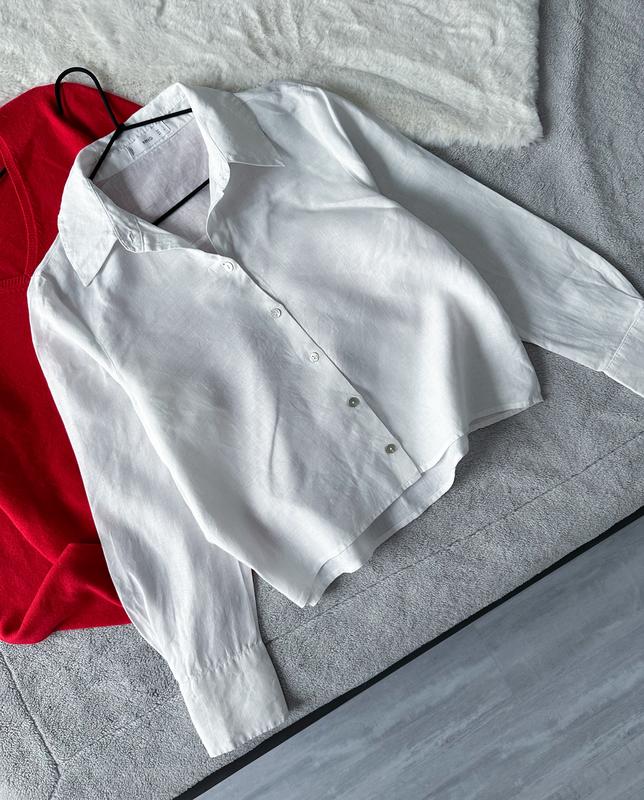 Біла сорочка Mango Розмір S 100% льон Довжина 52 см ПОГ 51 см Рукав 58 см