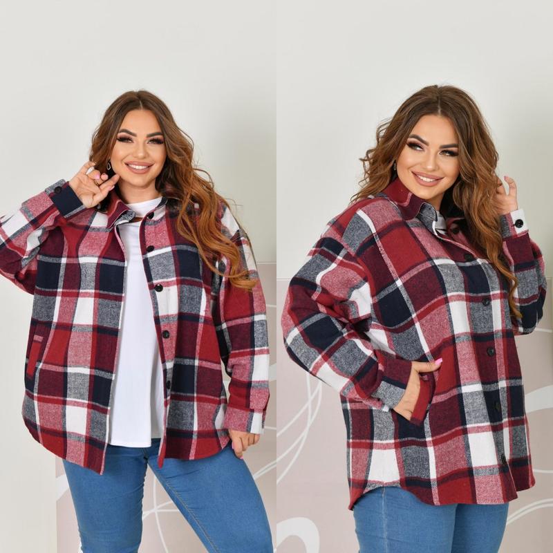 Код 3802 Ціна 1070 грн. Тканина: кашемір-байка 100% натуральність. Гарна якість пошиття🔥 Кольори: бордовий, сірий, зелений. Розміри: 48-50, 52-54, 56-58, 60-62, 64-66. Довжина сорочки: 72, 73, 74, 75, 73 см. Довжина рукава від горл.: 73, 74, 75, 76, 77 см. Обхват рукава: 52, 54, 56, 58, 60 см. Заміри готового виробу: 48-50 ОГ 120 ОТ 120 ОБ 120 52-54 ОГ 128 ОТ 128 ОБ 128 56-58 ОГ 136 ОТ 136 ОБ 136 60-62 ОГ 144 ОТ 144 ОБ 144 64-66 ОГ 152 ОТ 152 ОБ 152 На моделі показано цей розмір 52-54❗️ Зріст моделі 170 см. Oб’єми моделі ОГ 107 ОТ 84 ОС 107 см. Трендова сорочка великих розмірів із дуже якісного кашеміру байки в клітинку (тканина не тягнеться). Сорочка вільного силуету (на фігурі повинна бути вільною, така модель), має стояче-відкладений комірець. Лінія плеча спущена, рукав на манжеті з гудзиком. Попереду оброблені прорізні кишені. Застібається на гудзики.