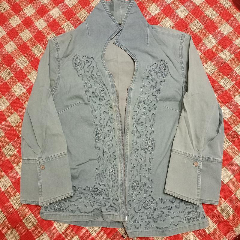 Жіноча джинсова сорочка, дуже хороший стан, має вишиті візерунки. Напівоб'єм грудей - 44 см Напівоб'єм талії - 45 см Довжина сорочки - 57 см Довжина рукава - 46 см Пишіть.