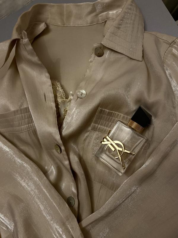Елегантна жіноча сорочка у ніжному відтінку шампанського ✨ Виготовлена з легкої, шовковистої тканини з делікатним перламутровим блиском. Класичний комір, застібка на ґудзики та акуратні нагрудні кишені створюють стильний і універсальний силует. Сорочка красиво драпірується, приємна до тіла та виглядає дорого й вишукано. Ідеально підійде як для офісних образів, так і для елегантних повсякденних або вечірніх поєднань. Легко комбінується зі штанами, спідницями чи джинсами. 🌱колір: Шампань 🌱розмір: XS/S Заміри уточнюйте