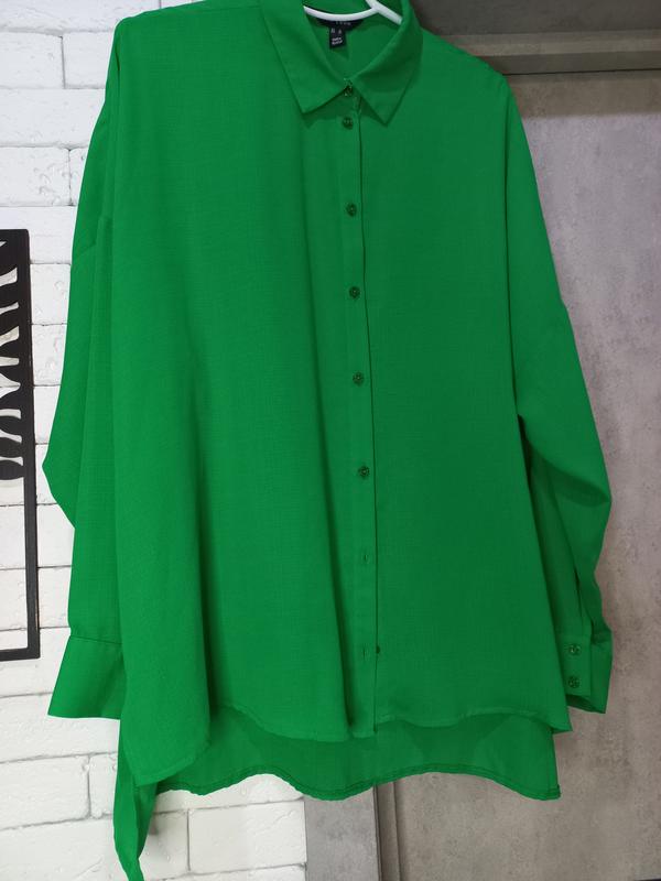 неймовірна, стильна, гарна, актуальна, фірменна сорочка зелена ,на гудзиках, вільна розмір вказаний 16, підійде на 52,54 стан нова,без етикетки, не ношенна,,, дифектів не має... приємна тканина на дотик і до тіла, спадаюча... дуже гарний колір, насиченний зелений, модний,стильний,дуже гарний... преспущенні плечі, з заді довша ,перед коротший, має по бокам розрізи довжина з заді 80,перед 72 в груді 73 см,-вільна талія 72 в стегнах 73 рукав від шиї 79,від пахви 44,від плечового шва 44 плечі 81 преспущенні заміри напівобьєм