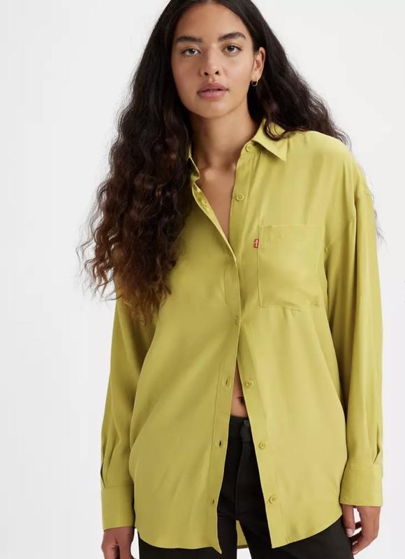 Салатова шовкова сорочка від Levi's в стилі оверсайз. Особливості: • Тканина: 100% шовк • Розмір: pS • Стан: новий • Класичний комір і застібка на гудзики • Нагрудна кишеня з логотипом бренду Розміри: • Довжина: 74 см (спереду), 78 см (ззаду) • Напівобхват грудей: 53 см • Ширина плечей: 53 см • Довжина рукава: 56 см Ідеальна для створення стильних casual та smart-casual образів. Може носитися як самостійно, так і в якості верхнього шару.