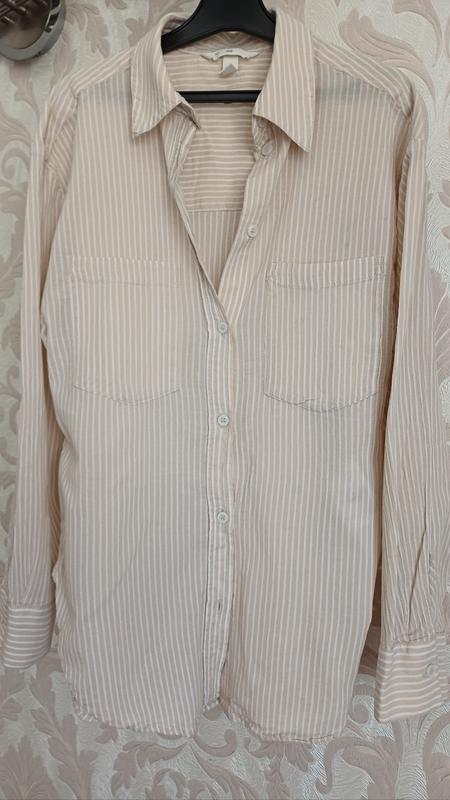 Сорочка в смужку, тканина 100% катон, стан ідеальний. Обг. 82 Рукав 49 Довжина 66 з боків вирізи.