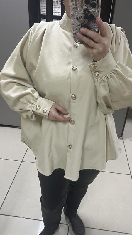 Шикарная рубашка оверсайз Плечо и рукав пошито супер Шикарная фурнитура Длина 80 Грудь полуобьем 80 Низ полуобьем 83 Рукав от шеи 70 Ткань полиэстер и эластан Смотрится шикарно и дорого Пишут 14 размер но она на большой размер К телу приятная !!!