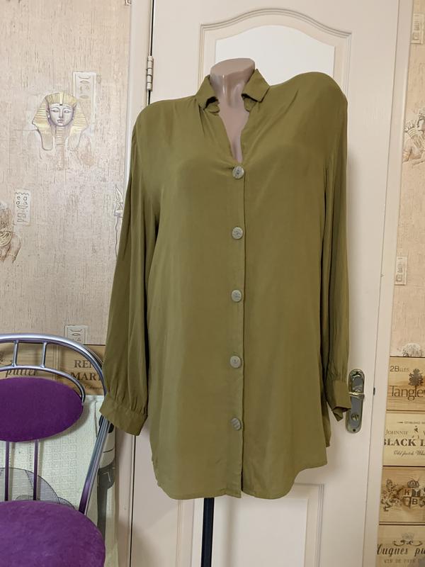 Рубашка отличного качества ткань натуральная вискоза очень лёгкая, приятная к телу, крой удлинённый, в груди 55 рукав от плеча 60 длина 70 по бокам 85 сзади, бёдра 58