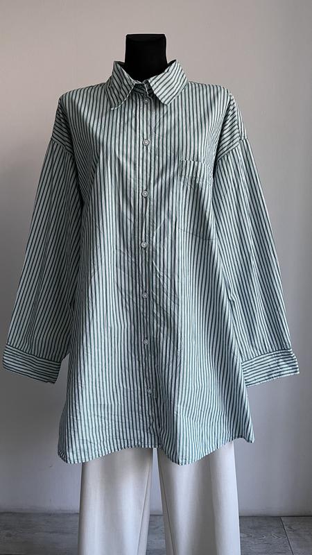 Зелена сорочка вільного крою у смужку 100% бавовна Стан ідеальний Розмір Л Півобхват грудей - 81 см Довжина рукава від горловини - 78 см Довжина -88 см