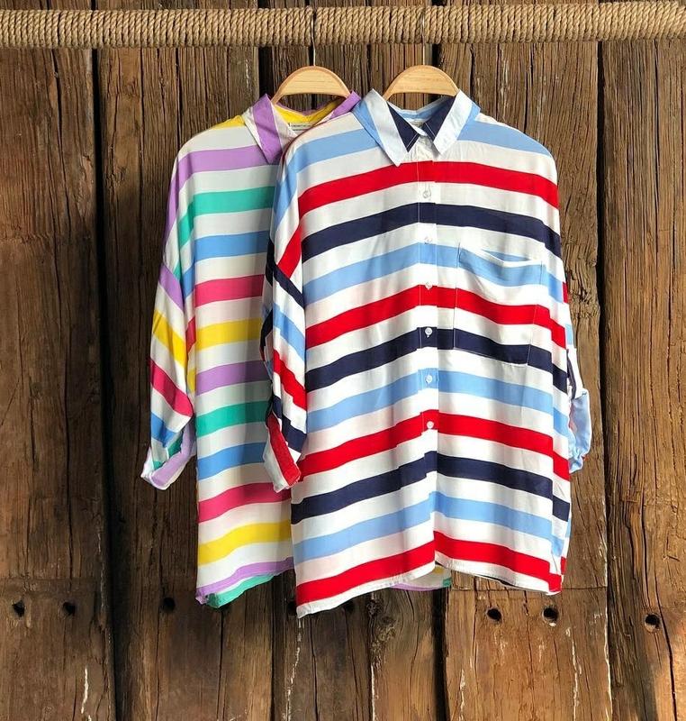 Сорочка оверсайз в різнокольорову смужку з довгим рукавом. Дуже тонка і приємна тканина. Тканина легка,летить і натуральна!!! заміри: Довжина сорочки 71 см, Напівобхват грудей 66 см Рукав-49 см Тканина дуже приємна до тіла! Сорочка нова!! Не секонд хенд!!!