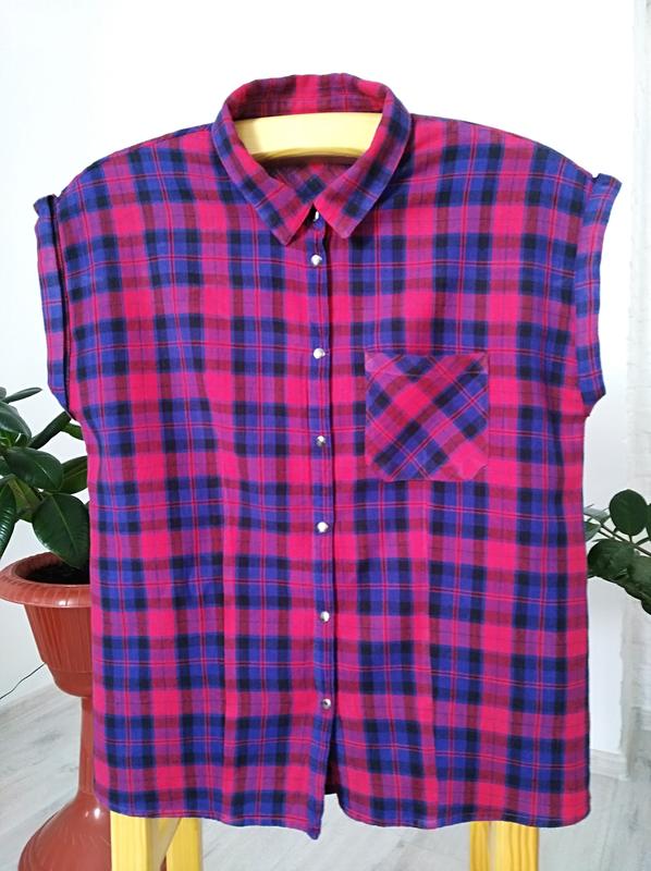 Сорочка на заклепках. Колір не такий яскравий, як на фото 1,2. Стан нової речі. ОГ 50, ВІД 50, плечі 52, довжина 62 див.