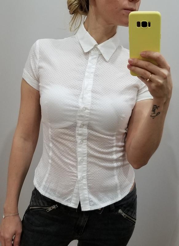 Белая рубашка из прошвы с коротким рукавом блуза хлопок
