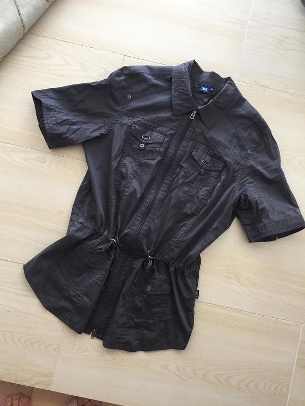 Стильна сорочка . Талія регулюється гумками . Розмір М /L Стан нової. Заміри : ПОГ 53,5 см . Довжина по спинці 70,7 см , рукав27,5 см
