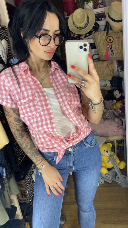 Стильна сорочка..з коротких рукавчиків.. Йде на розмір xs-s 42-44 приємна до тіла.. легка...Коттон.. Відмінно сидить на фігурі.. Виглядає стильно і завжди актуально..