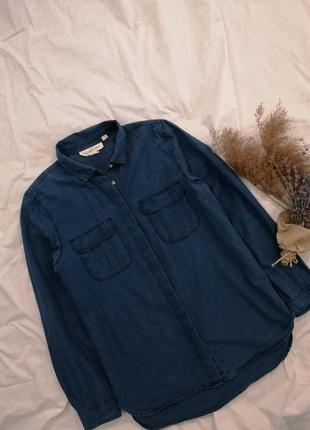 Трикотажная Ая рубашка свободного кроя, спереди два накладных кармана. Длина изделия спереди/сзади - 68/73см ПОГ - 49см