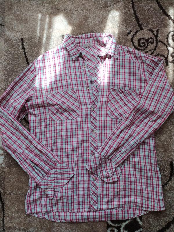 Лёгкая рубашка из натурального материала. Можно носить как оверсайз, можно под футболку и майку или отдельно. Всегда актуальная клетка ;) В прекрасном состоянии Полуобхват в груди - 56 см Талия - 52 см Бёдра - 56 см Длина - 70 см, сзади - 74 см