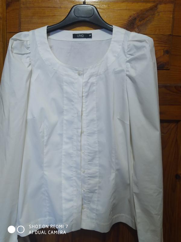 белая рубашка бу, от UNO, р. 38 рукав фонариком, немного тянется, для офиса или делового стиля.