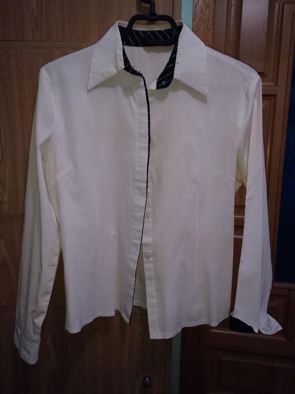Блузка в очень хорошем состоянии. Потайная застежка, изнутри отделка тканью контрастного цвета. Очень удачно комбинировать с мужскими галстуками Замеры: плечи - 43см, ПОГ - 50,5см, ПОТ (точка, максимального сужения) - 44см, внизу -49см, длина рукава по более длинной стороне (от плеча) - 57см, по короткой стороне - 42см, из них манжета - 5,5 см, ее можно закатать, но не на все 5,5, а где-то на 4-3,5см. длина по спинке - 54см. Блузка тянется, дефекты - легкие накатыши подмышками, почти не заметны.