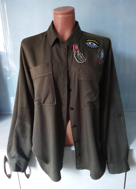 Натуральна сорочка з нашивками кольору хакі Only. Розмір S. Стан нової речі. Рукава можна регулювати.