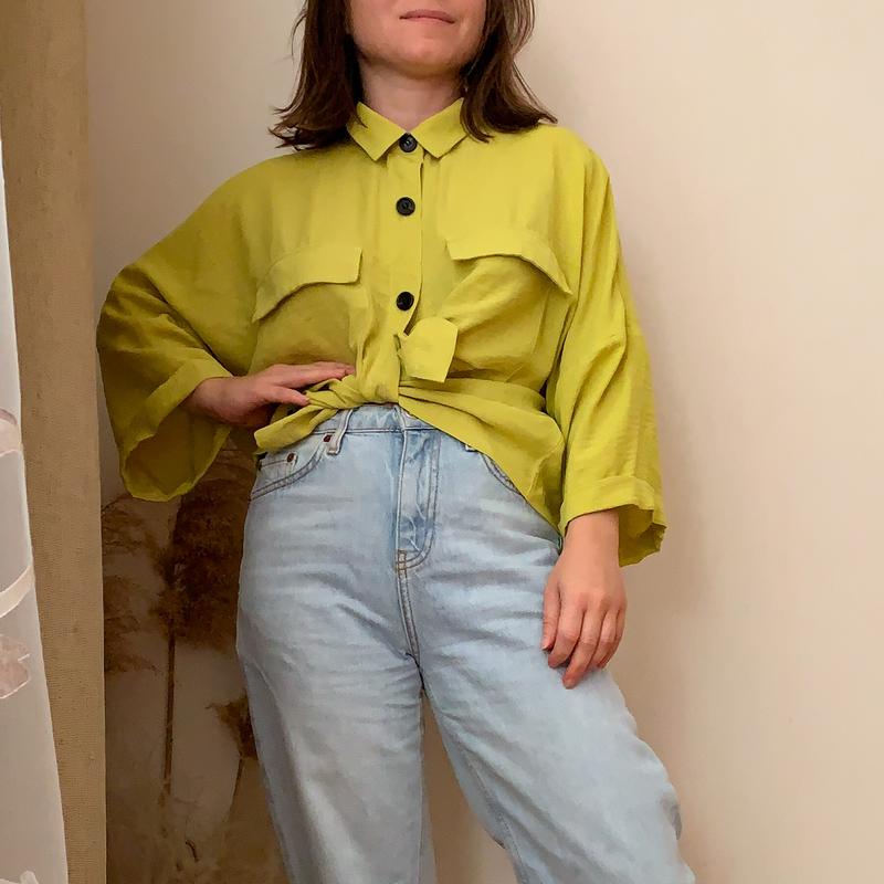 Красивый насыщенный цвет лайм - очень трендовый и освежающий Новая, не носилась Состав полиэстер, но очень приятный к телу Размер Л, надет на хс