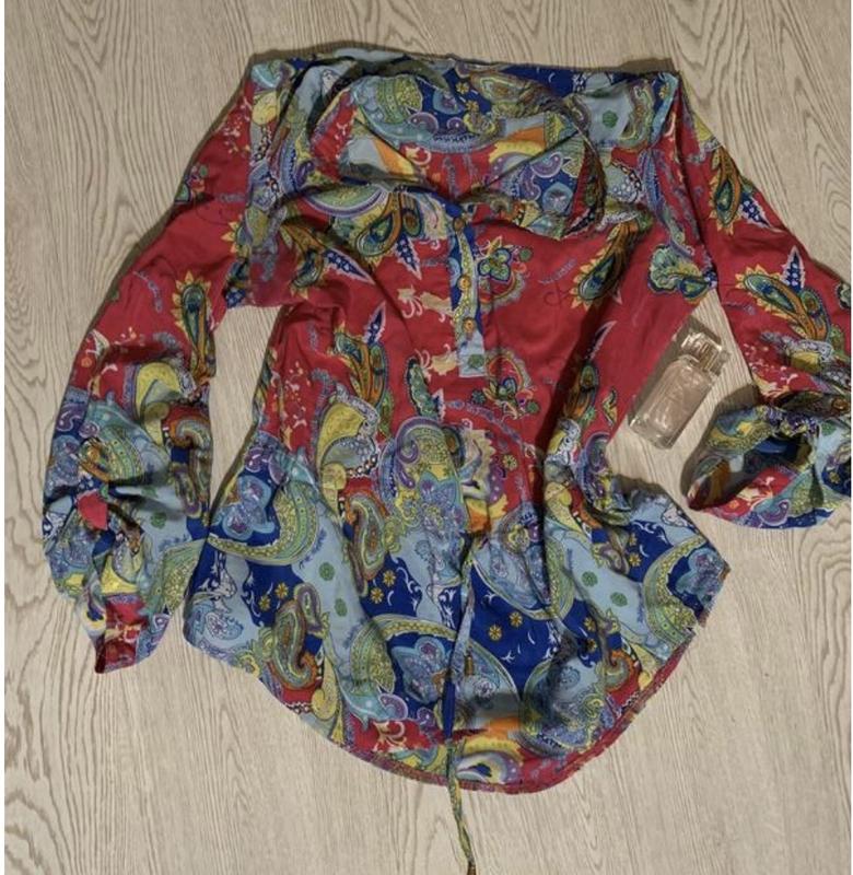 Яскрава красива сорочка з довгим рукавом, який можна робити 3/4 з поясочком, розмір 38
