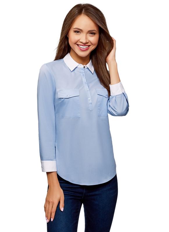 Універсальна бавовняна сорочка блідо-блакитного кольору із застібкою на кілька гудзиків і коміром. Приталений крій. Стан нової, надіта раз або два. Розмір S. Заміри: довжина 63, рукав 51, ОГ 82см.