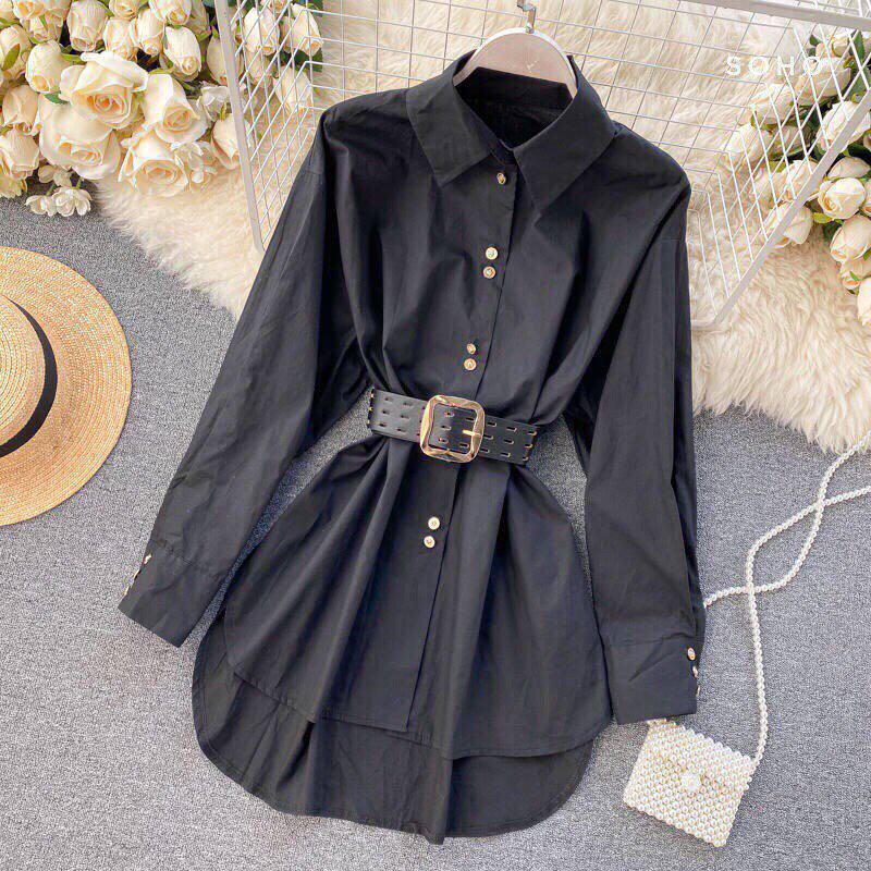 Удлиненная рубашка❣️ Мод 40 ⠀ ▪️ткань: коттон, поясок в комплекте ▪️размер: универсальный 42-46 ▪️цвет: чёрный и белый ▪️длина: 77 см, рукав 50 см