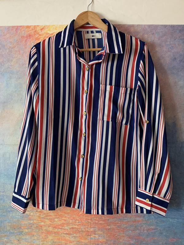 Нова сорочка одягалась лише раз для фотосесії. На комірі видно, що нема слідів носіння! Класно, що рукав можна загорнути, як 3/4 є ґудзичок, щоб зафіксувати. Заміри: Довжина від плечей 68 см Ширина плечей 41 см
