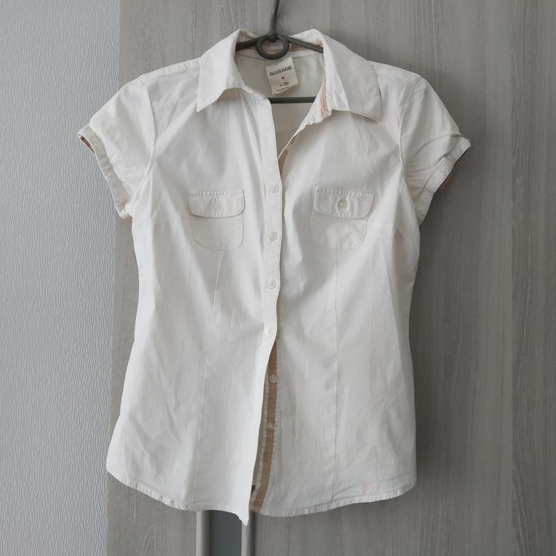 Сорочка Коттон. Легка літня сорочка молочного кольору з вертикальними лініями. Маленькі кишеньки відкриваються. Розмір 42-44. Недолік - невелика пляма спереду ( останнє фото)