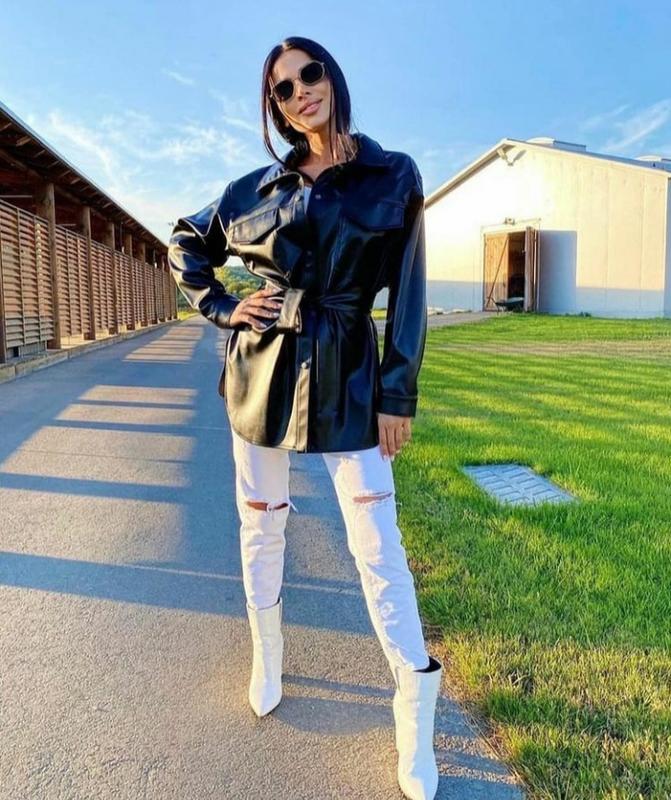 сорочка подовжена з розрізами,на кнопках метелевих,під поясок Кольори:Чорний ,білий,рижий розмір:42-46 універсал Тканина:еко шкіра Ціна:475