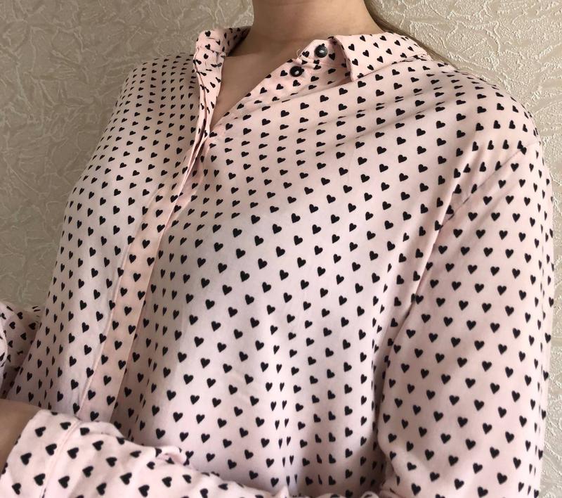 Гарна сорочка ніжно-рожево кольору(камера не передає колір) 100% віскоза Розмір s-m,сидить вільно Стан нове,внизу є запасна ґудзик Довжина 52 см Довжина рукава від плеча(плече продовжений) 54 см, Напівобхват грудей 53 см Купувала в H&M, одягала пару раз