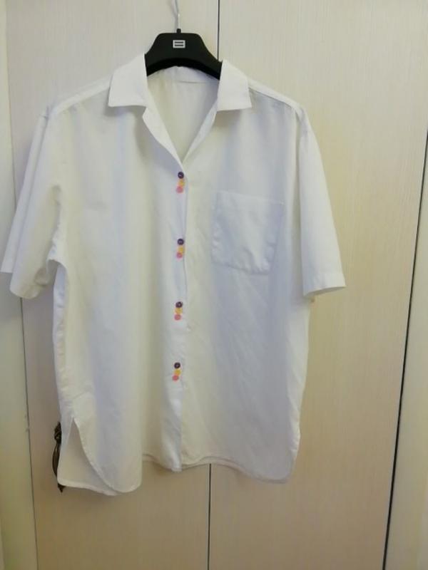 Рубашка большого размера 50-54,из тонкого хлопка, с весёлыми яркими пуговицами, 3 пуговки, рабочая только одна. С закругленные разреза и сбоку. Дл. 76,ПОГ 63 прямого кроя. См. другие мои объявления.