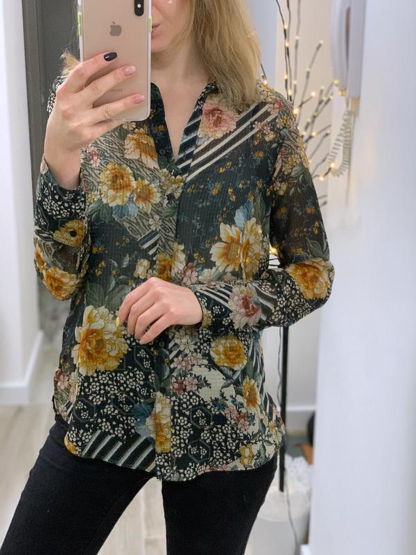 ✔️Сорочка в квітковий принт ZARA . ✔️Розмір XS . ✔️поліестер{ шифон} . ✔️ заміри: довжина по спинці - 66 див., довжина рукава - 57 див., ПОГ - 46 див . ✔️Стан ідеальний ! .