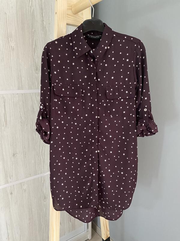 Легенька, подовжена , бордова сорочка в зірки, Dorothy Perkins, pp. us 6, euro 38, uk 10, довжина спереду 75, довжина по спинці 85, рукав до локтика, три четверті,довжина від горло 55, з грудей 47, упоряд ідеал