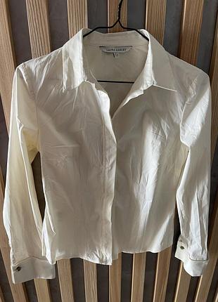 Чудова класична сорочка в ретро-стилі від відомого бренду Laura Ashley. Якісний матеріал, відмінний приталений крій з V - подібним декольте та коміром, на рукавах в'язані гудзики - запонки. Розмір: 10/36/6 ідн на S Заміри: довжина виробу по спинці, без урахування коміра - 57,5 см., ширина по спинці, від пройми до пройми - 38 см, довжина рукава - 61 см, напівобхват грудей - 43 см., тягнеться до напівобхвату - 46 см. , напівобхоплення талії - 39 см., тягнеться до напівобхвату - 43 см. Колір: молочний