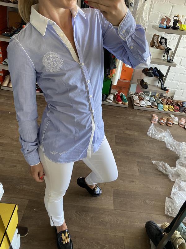 Стильная рубашка Tommy Hilfiger красивого голубого оттенка Состояние новой вещи, в носке пару раз Маркировка размера 4. Идёт на маленькую S или XS 100% хлопок Со штанами 900 грн