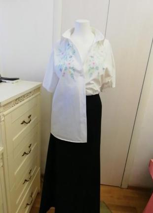 Сорочка, блуза з дуже ніжною вишивкою, припинення горіння але поєднується з джинсами, бавовна. Розм. 40-42. Дл. 68 см, ПОГ 60см, прямий крій.