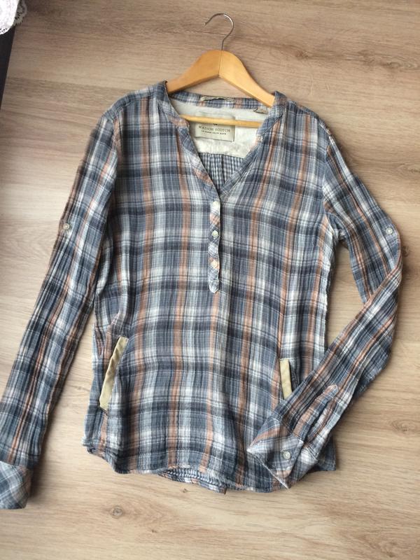 Чудова сорочка від дорогого бренду. Спочатку купувалася була впритул (жінки!). - дуже вже сподобалася! :) З боків кишені, відстрочені шкірою. Тканина легчайшая марлечка. Розмір вказаний 2 плечі 40 см пахви 46 см довжина по спині 62 см Є невеликий дефект