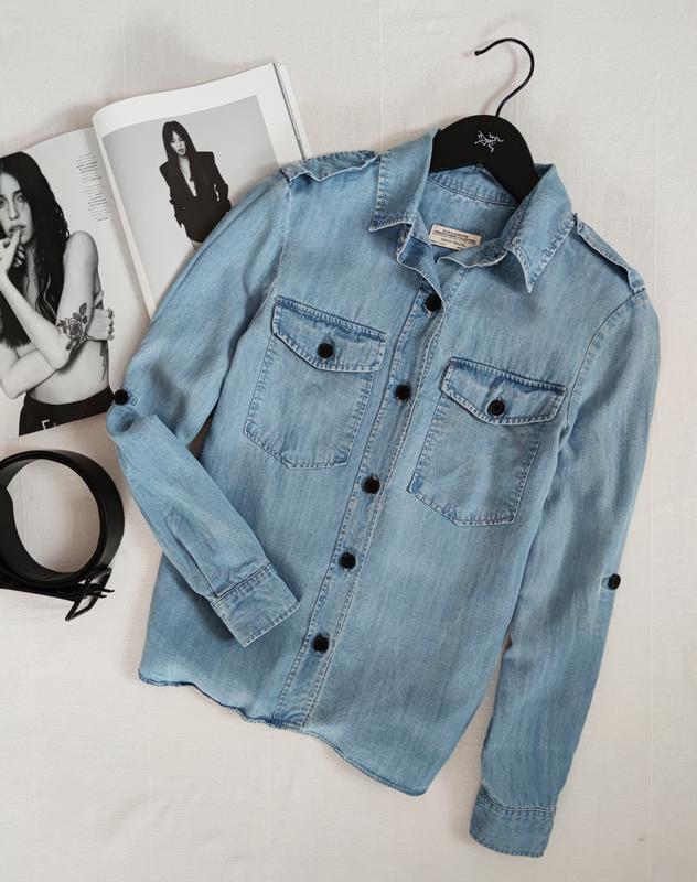 Джинсова сорочка від Zara прямого крою, тканина котон, розмір вказано XS, ПО грудей 45 см, довжина 60 см, довжина рукава 58 см