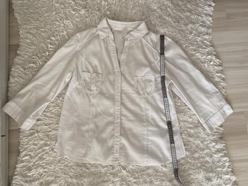 класична біла, не приталена, рукав 3/4, заміри на фото (детальніші в смс), стан ідеальний, дефектів немає